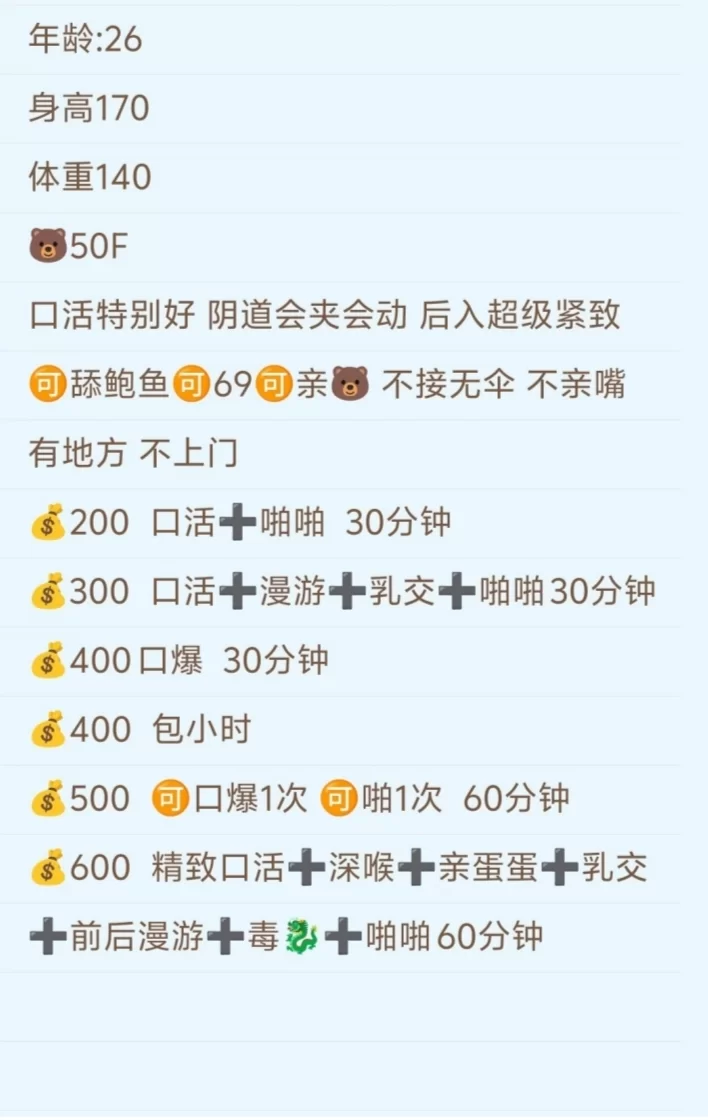 配合不错.活好,联系直奔主题。就ok女需要钱,男需要性,提枪就射,拔吊无情,从不会纠缠不清,非常适合快节奏嘛,省出时间**做的事情,自从有了小姐,上班族更专心了,工作效率更高了,业绩也升的更快了,自从有了小姐,老板更有创业激情了,更舍得消费了,生活更有动力了,自从有了小姐,脖子也不疼了,爬山也有劲了,牙口倍好,吃嘛嘛香!关键是还没有无耻的第三者了